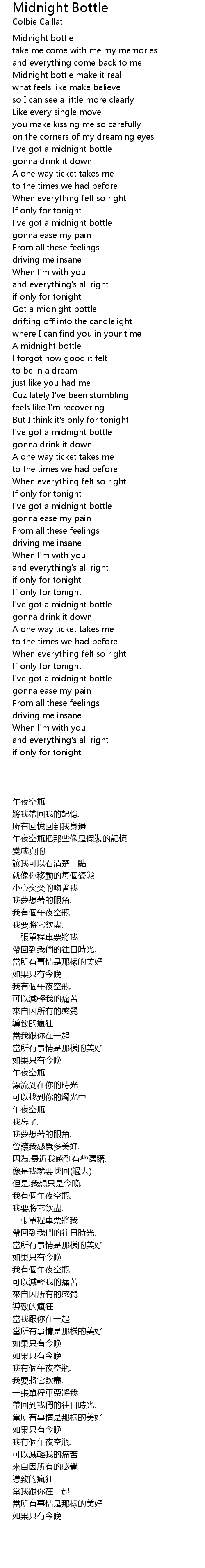 I've got a midnight bottle |