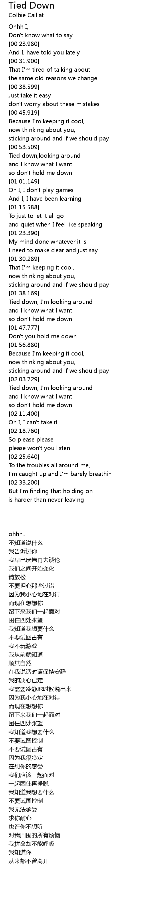 | [02:04.479] | Tied down, I'm looking around |