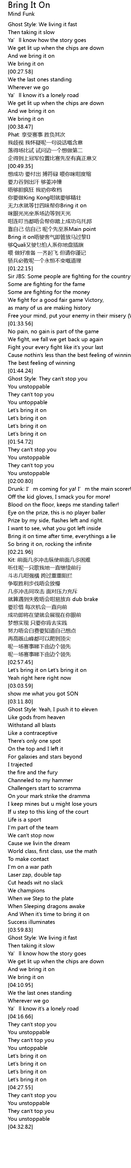 | [01:11.63] | Bring it on唔驶客气即管放马过黎 |