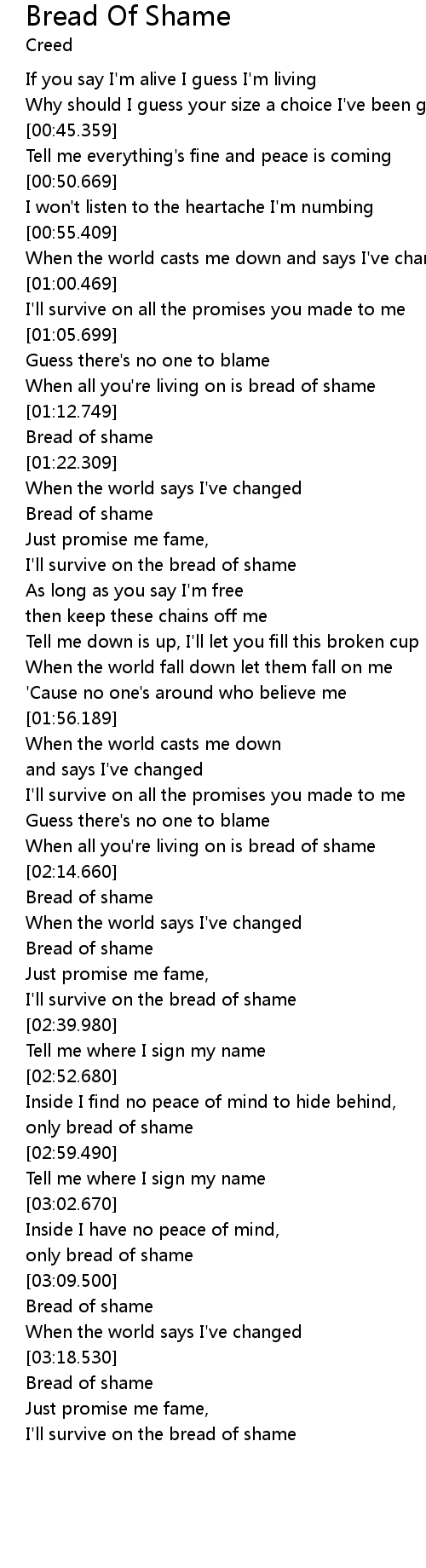 | [02:17.400] | Bread of shame |