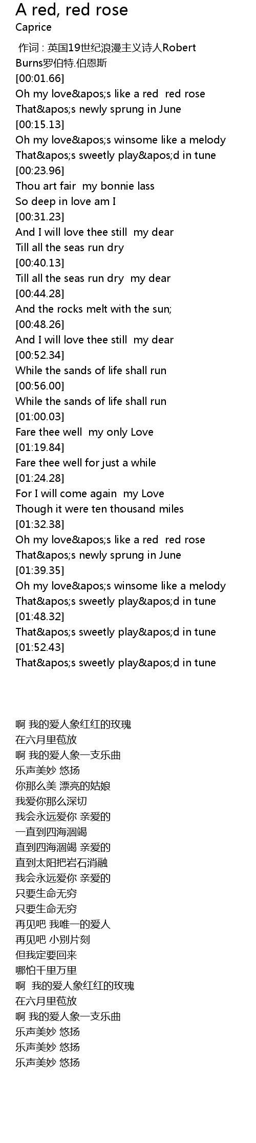 | [01:33.31] | Oh my love apos s like a red red rose |