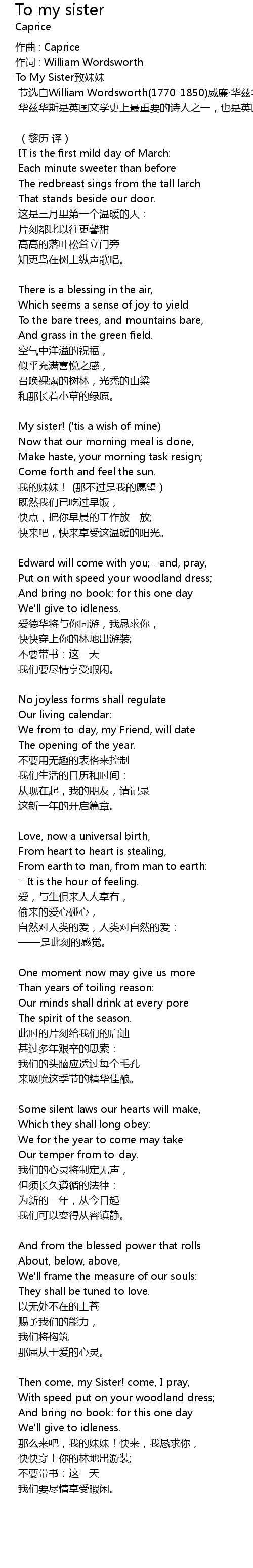 | 节选自William Wordsworth(1770-1850)威廉·华兹华斯诗作。 | |