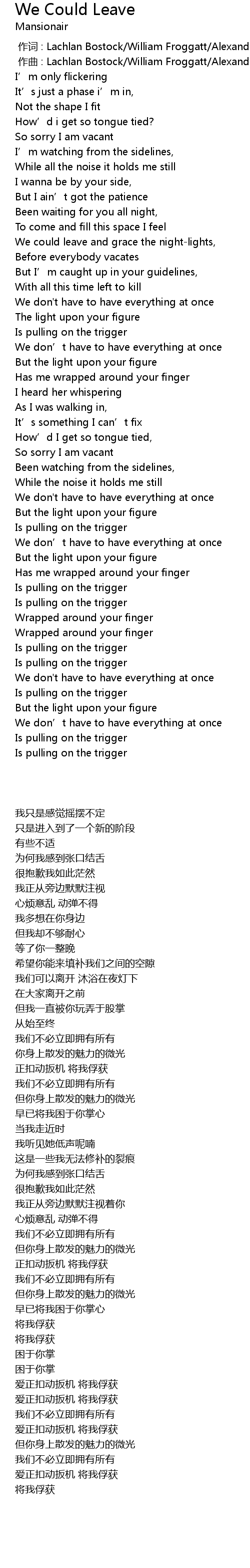 | [00:00.000] | 作词 : Lachlan Bostock/William Froggatt/Alexander Nicholls |