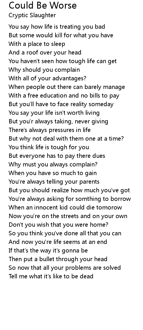 You say your life isn't worth living |