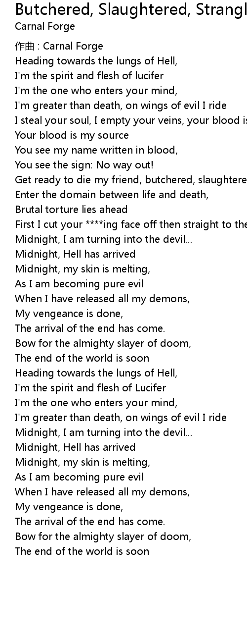| Song | Butchered, Slaughtered, Strangled, Hanged |