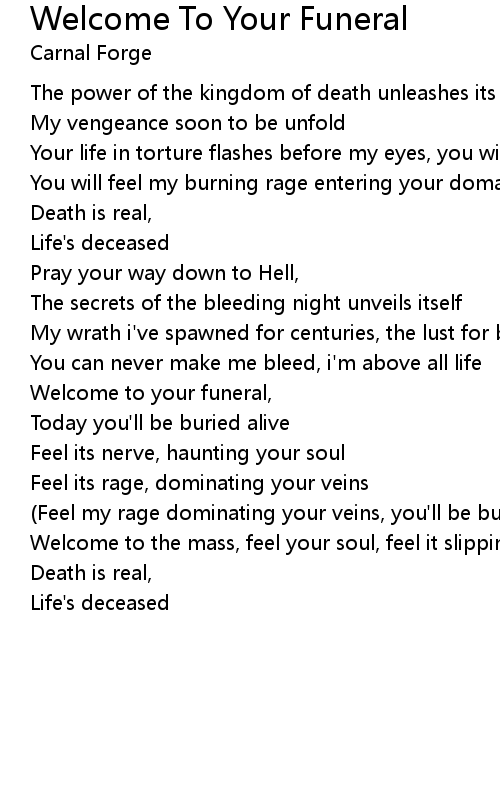 Welcome to your funeral, |