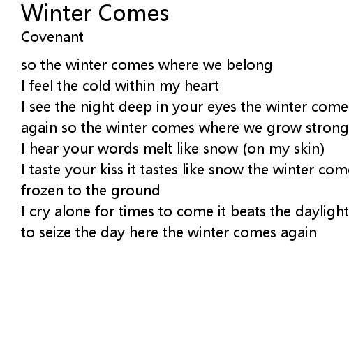 | I see the night deep in your eyes the winter comes at last here the winter comes again so the winter comes where we grow strong | |