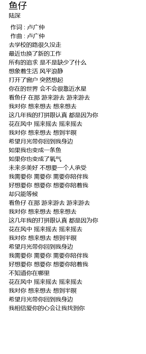 | [02:44.913] | 看鱼仔 在那 游来游去 游来游去 |