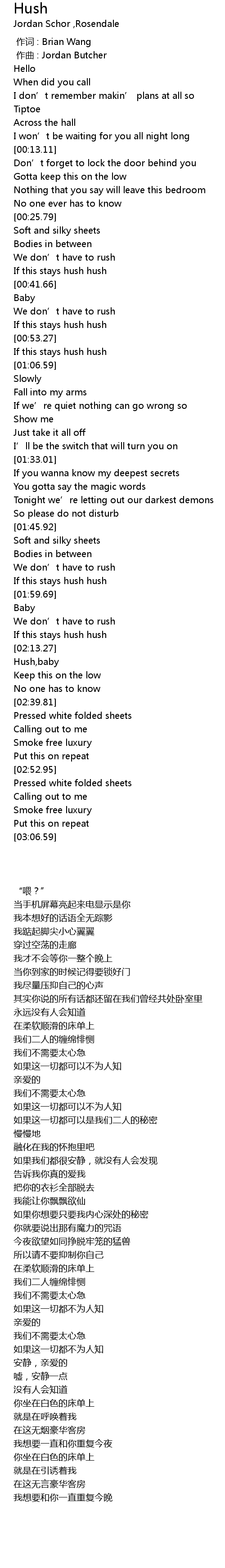| [00:19.68] | Nothing that you say will leave this bedroom |