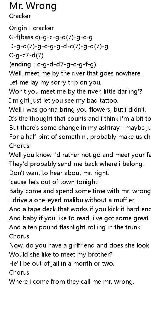 | Where i come from they call me mr. wrong. |