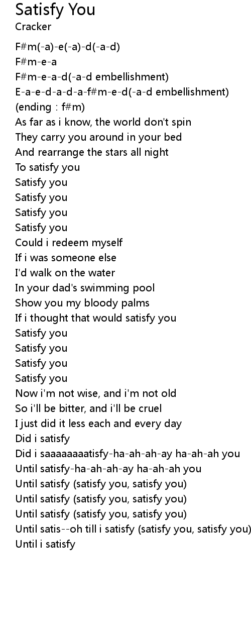| Until satisoh till i satisfy satisfy you, satisfy you | |
