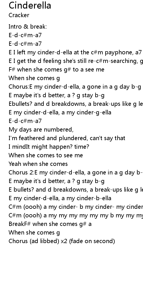 E my cinder-d-ella, a my cinder-b-ella |