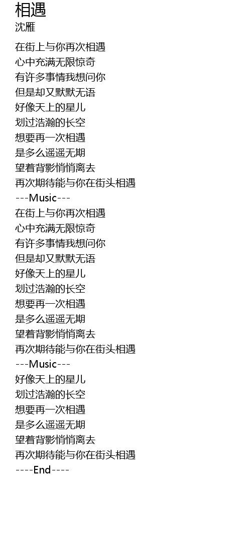 | [00:15.16] | 在街上与你再次相遇 |