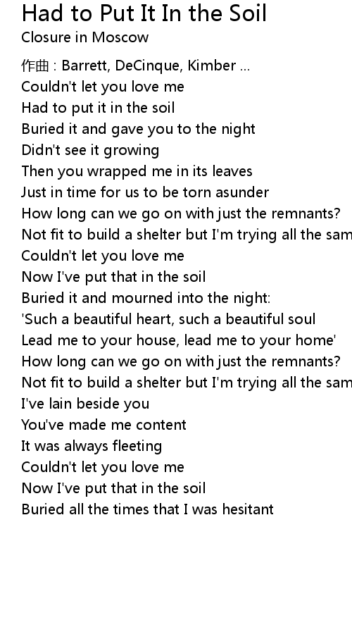 | Song | Had to Put It In the Soil |