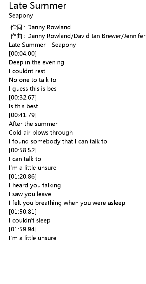 | [00:00.00] | Late Summer - Seapony |
