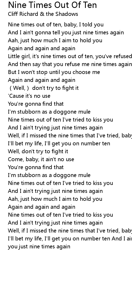 | [00:53.16] | Nine times out of ten I've tried to kiss you |