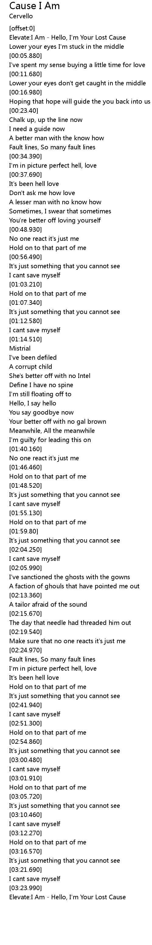 | [00:00.320] | Elevate:I Am - Hello, I'm Your Lost Cause |