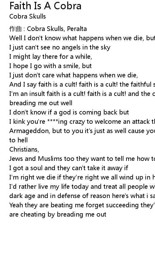 | I'm an insult faith is a cult! faith is a cult! and the cult is beating me by breading me out well | |