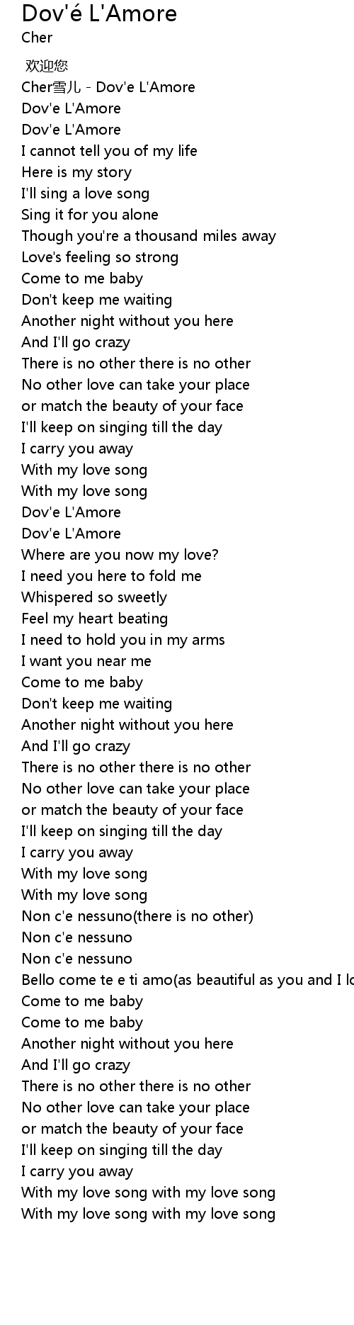 | [00:20.00] | Cher雪儿 - Dov'e L'Amore |