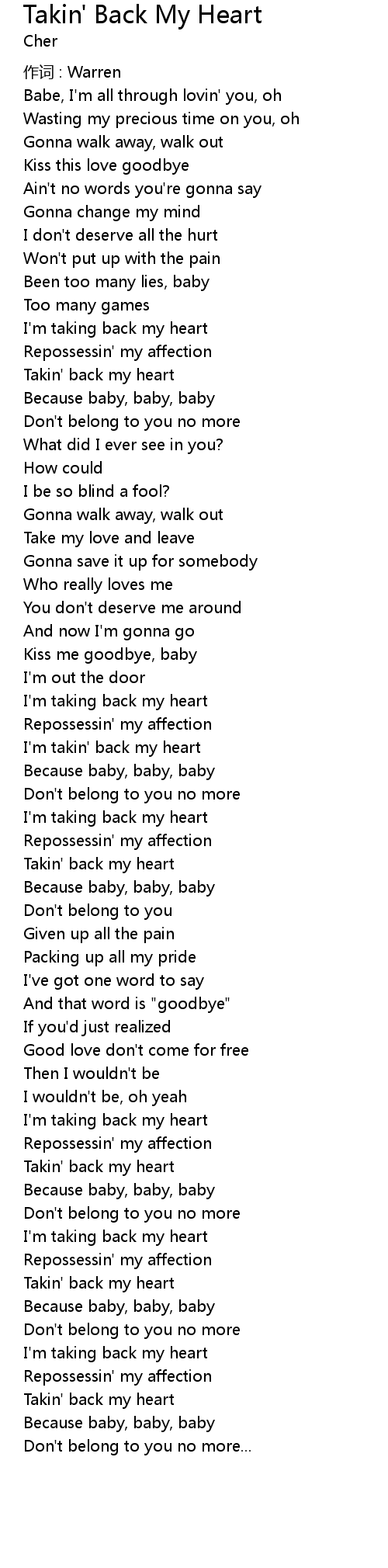 | I'm taking back my heart | |