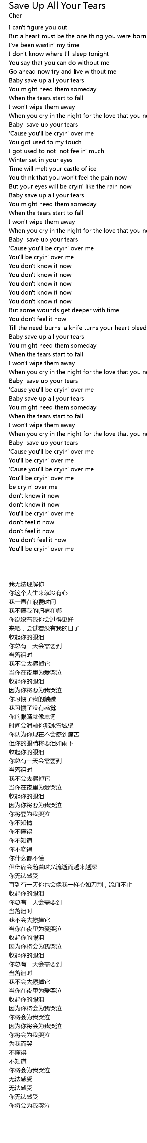 Baby save up your tears |