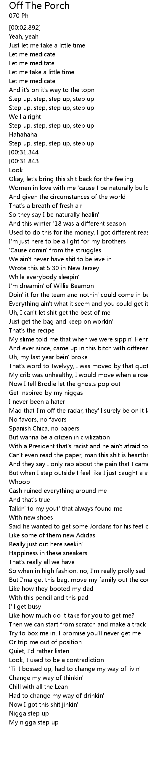 | [01:06.840] | Uh, I can't let shit get the best of me |