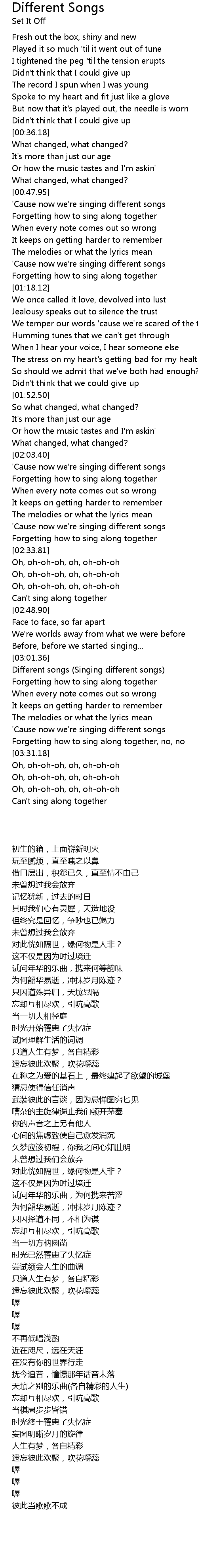 'Cause now we're singing different songs |