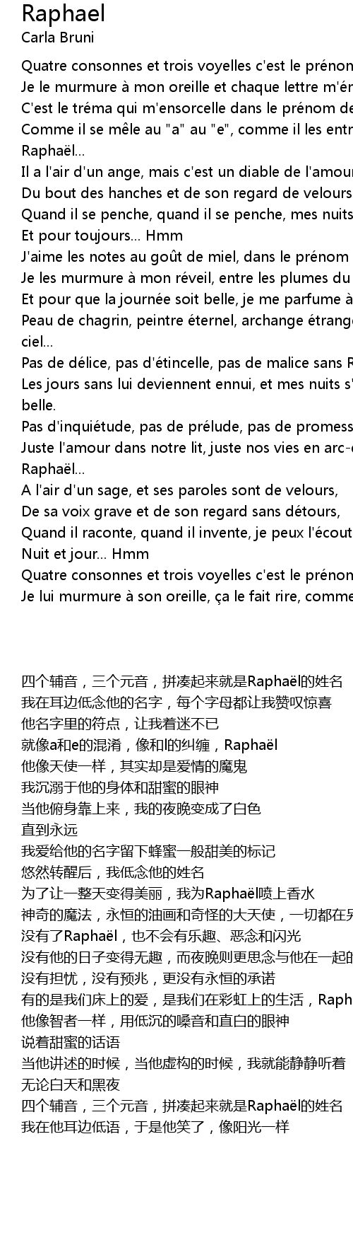 | [00:14.63] | C'est le tréma qui m'ensorcelle dans le prénom de Raphaël, |