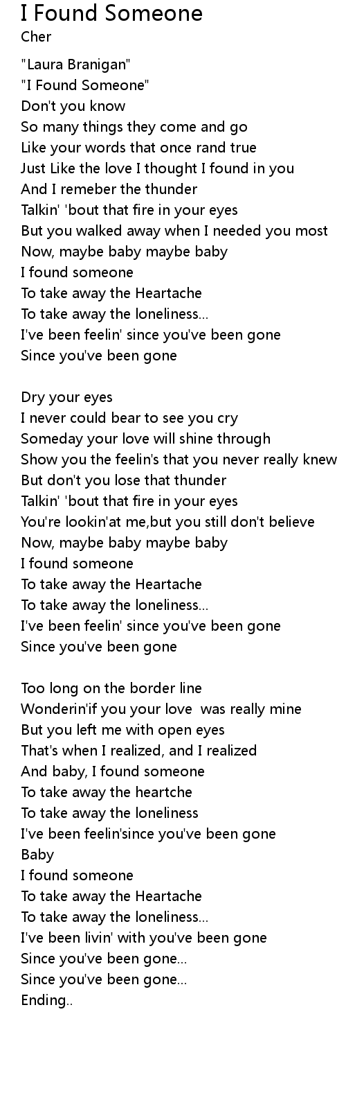 | And baby, I found someone | |