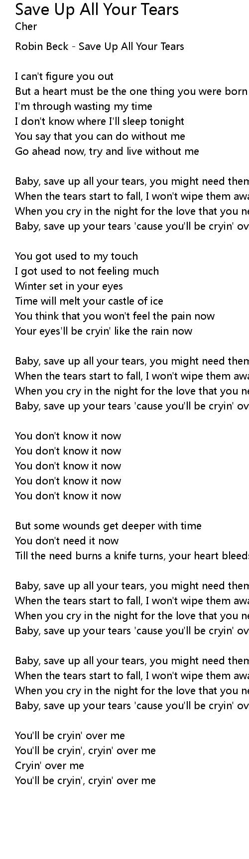 | Baby, save up all your tears, you might need them someday | |