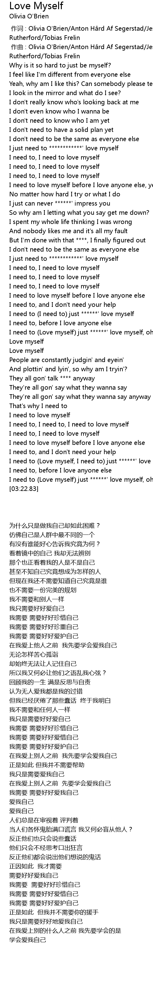 | [03:06.47] | I need to Love myself, I need to just ' love myself |