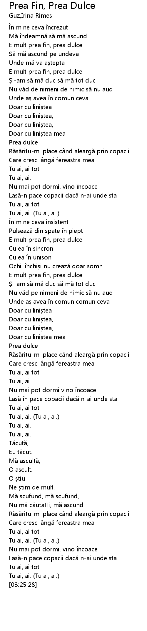 | [00:17.31] | E mult prea fin, prea dulce |