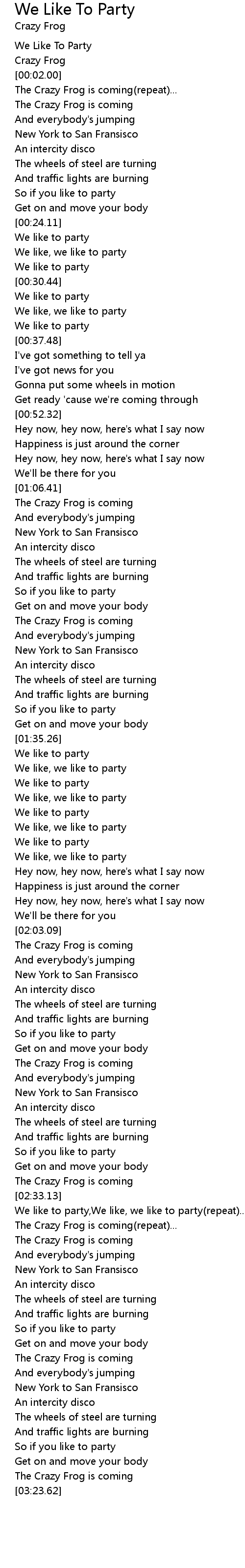 We like to party,We like, we like to party(repeat)... |