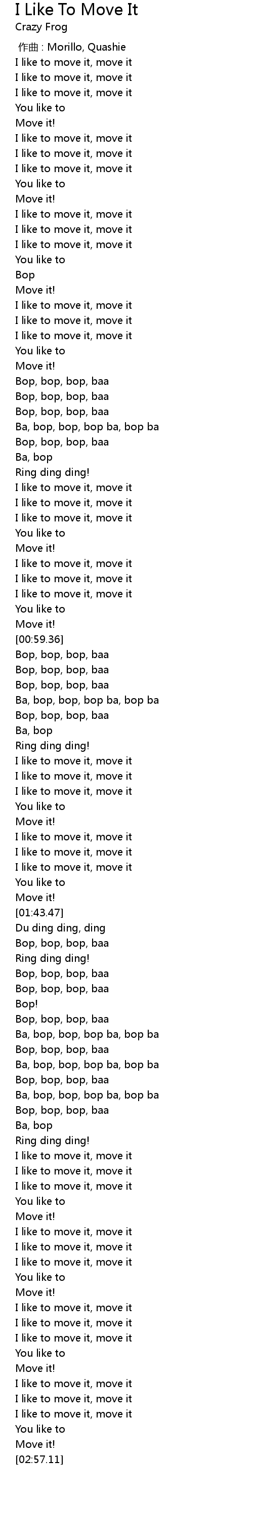 | [00:55.37] | I like to move it, move it |