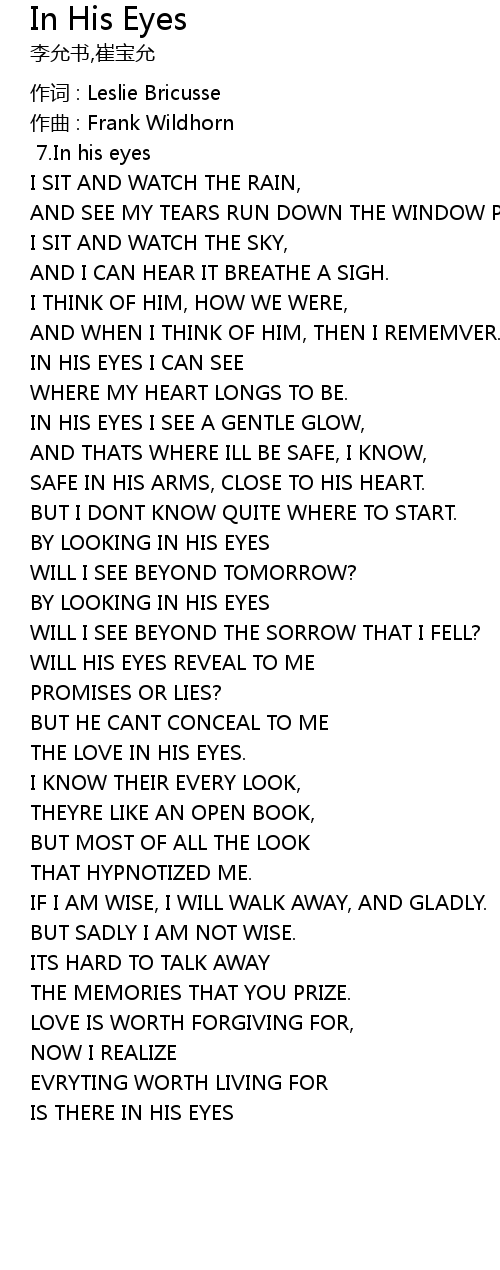 | AND SEE MY TEARS RUN DOWN THE WINDOW PANE. | |