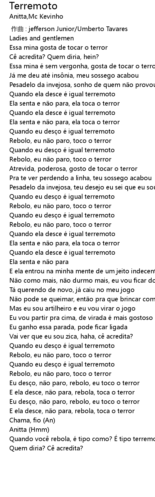 | [00:36.86] | Quando eu desço é igual terremoto |