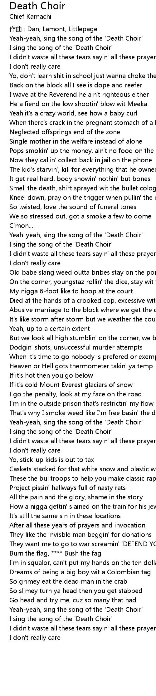 | Yeahyeah, sing the song of the ' Death Choir' | |