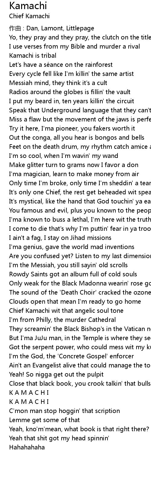 | Close that black book, you crook talkin' that bullshit, Messiah | |