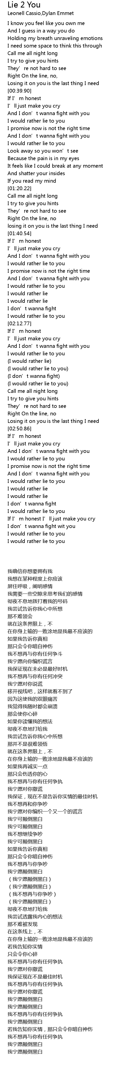 | [02:10.53] | I would rather lie to you |