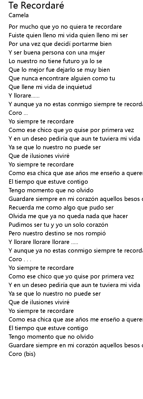 | Y aunque ya no estas conmigo siempre te recordare | |