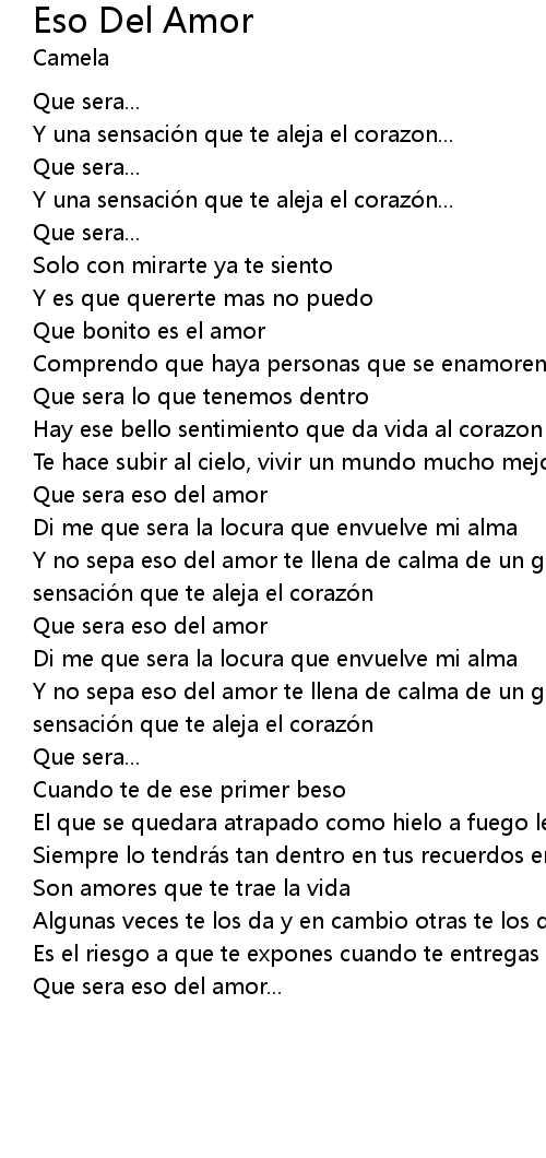 | Y no sepa eso del amor te llena de calma de un gran sentimiento de una sensacio n que te aleja el corazo n | |
