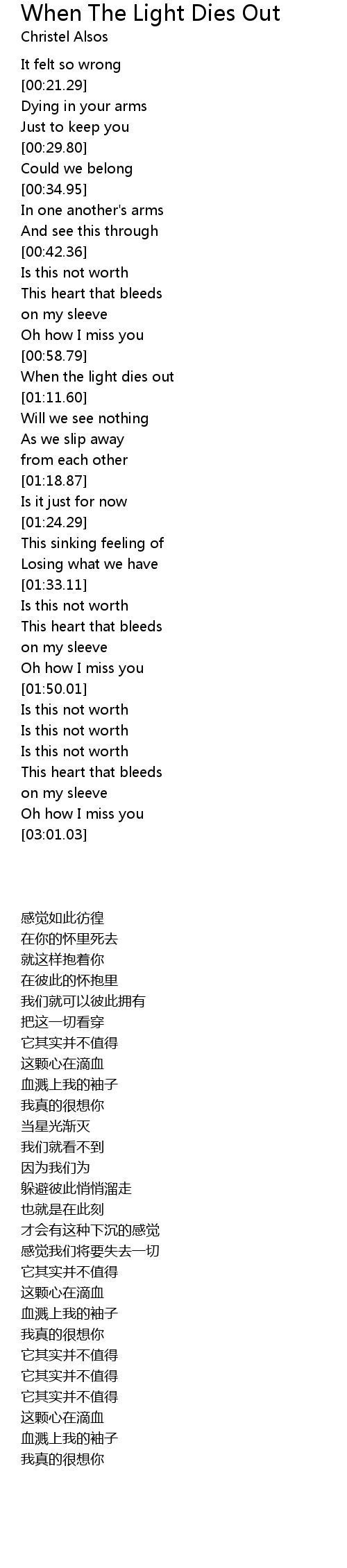 When The Light Dies Out Lyrics