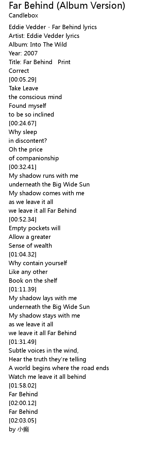 | [00:02.34] | Eddie Vedder - Far Behind lyrics |