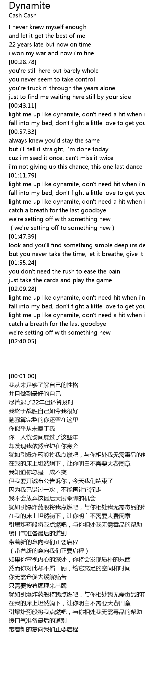 | [02:24.04] | light me up like dynamite, don't need a hit when i'm with you |