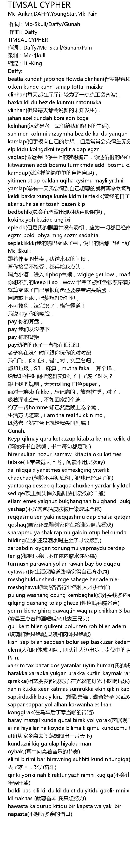 | [00:04.928] | 作词:Daffy/Mc-$kull/Gunah/Pain |