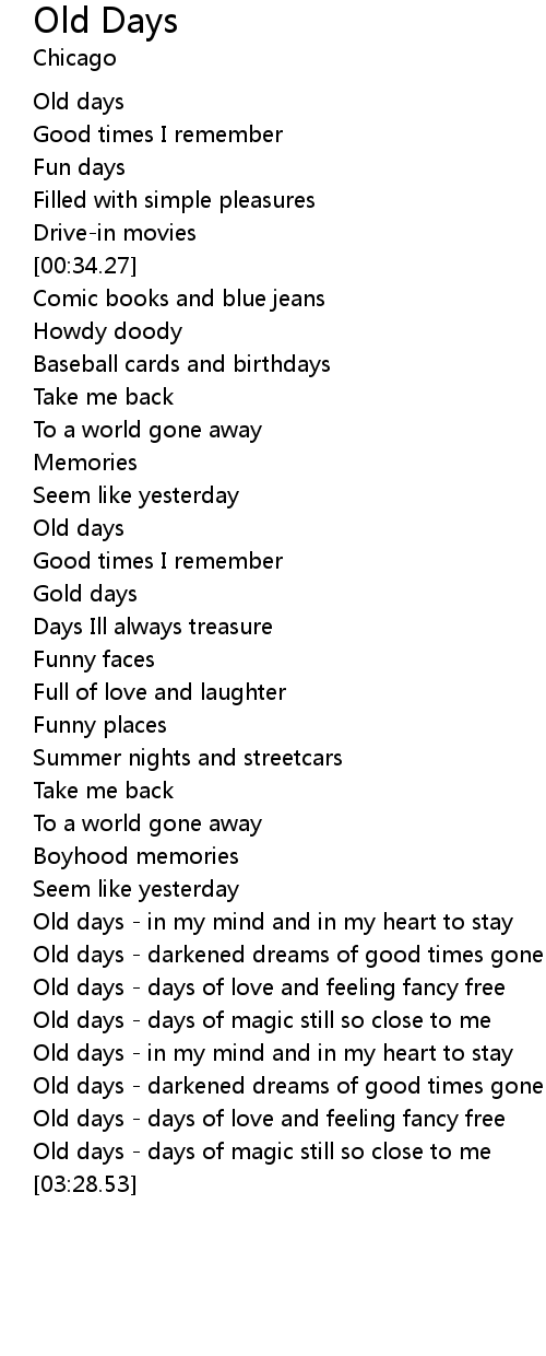 Old days - days of magic still so close to me |