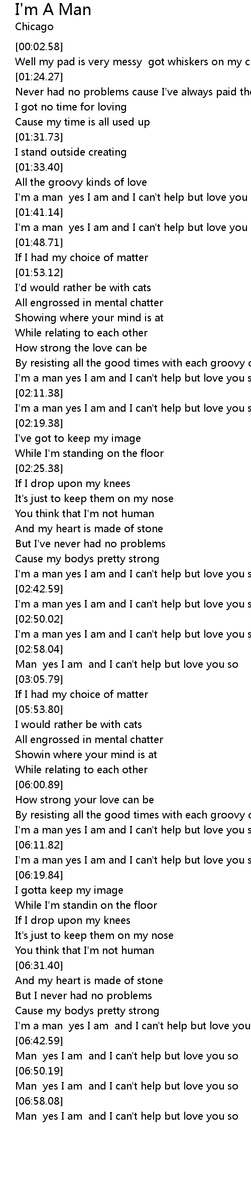 I'm a man yes I am and I can't help but love you so |