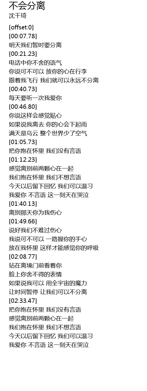 | [02:27.34] | 让时间暂停 让我们可以不分离 |