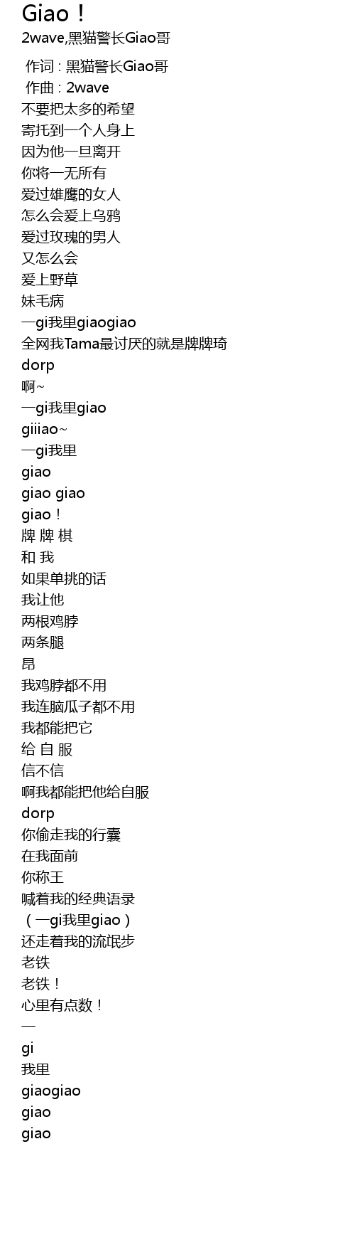 | [00:00.000] | 作词 : 黑猫警长Giao哥 |