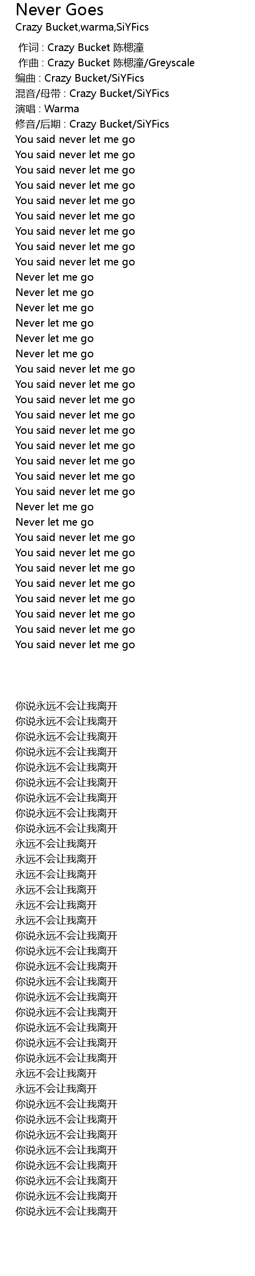 | [00:00.000] | 作词 : Crazy Bucket 陈楒潼 |